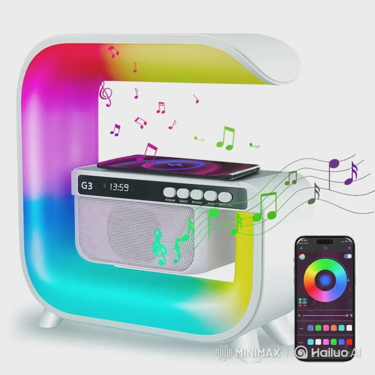 Spre deosebire de altele, combină iluminare RGB, boxă Bluetooth și încărcare wireless într-un singur design compact, oferind confort, economie de spațiu și funcționalitate practică.